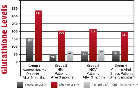 MaxGXL can dramatically raise your glutathione levels, with increases up to 292%.