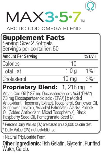 Keep your body running optimally with the benefits of Omega oils:Promotes healthy heart and vascular function Max357 supports healthy metabolic breakdown of fat and cholesterol Helps sustain healthy function of brain, nerve and eye cells
